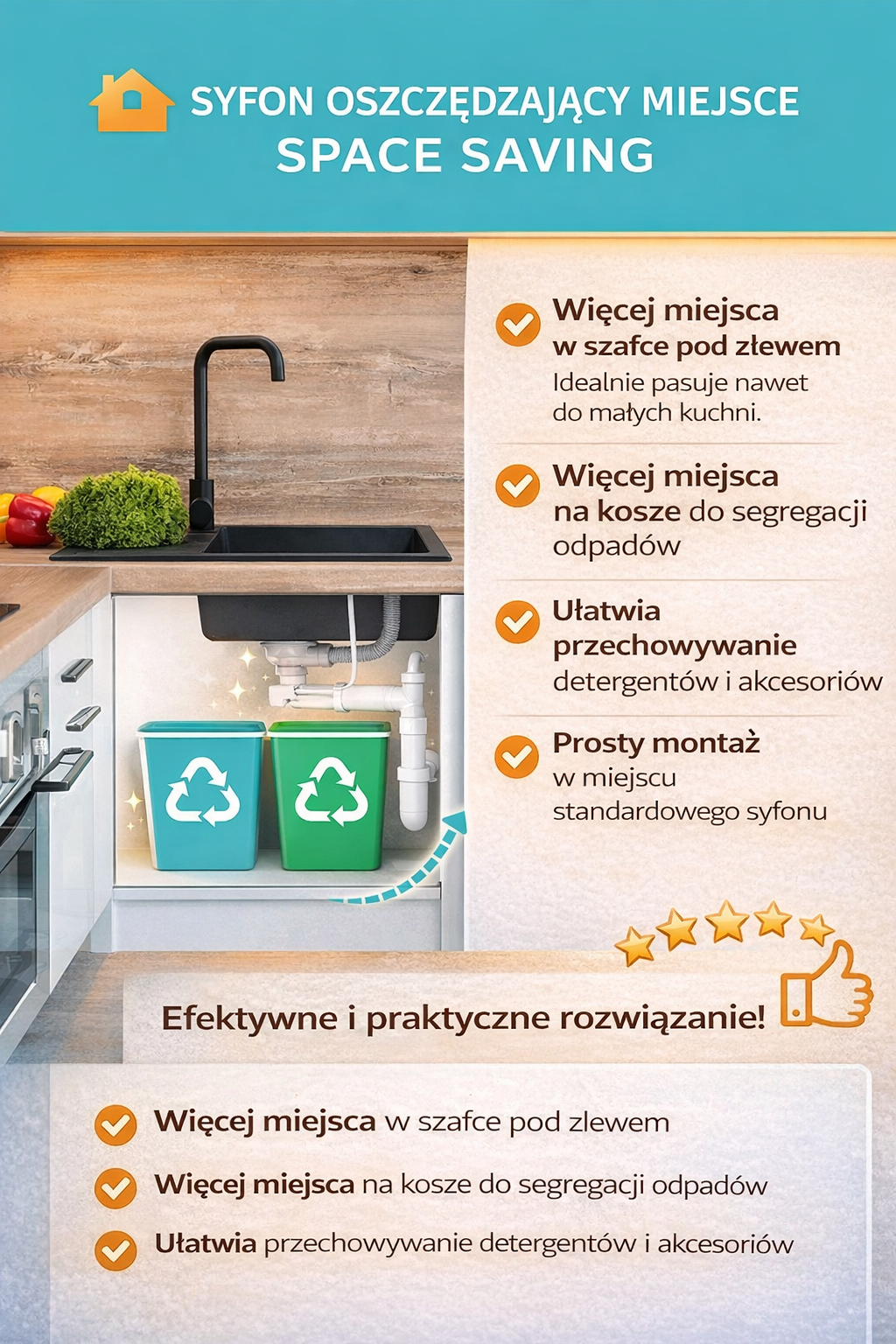 ✔ syfon Space Saving w zestawie – oszczędność miejsca w szafce