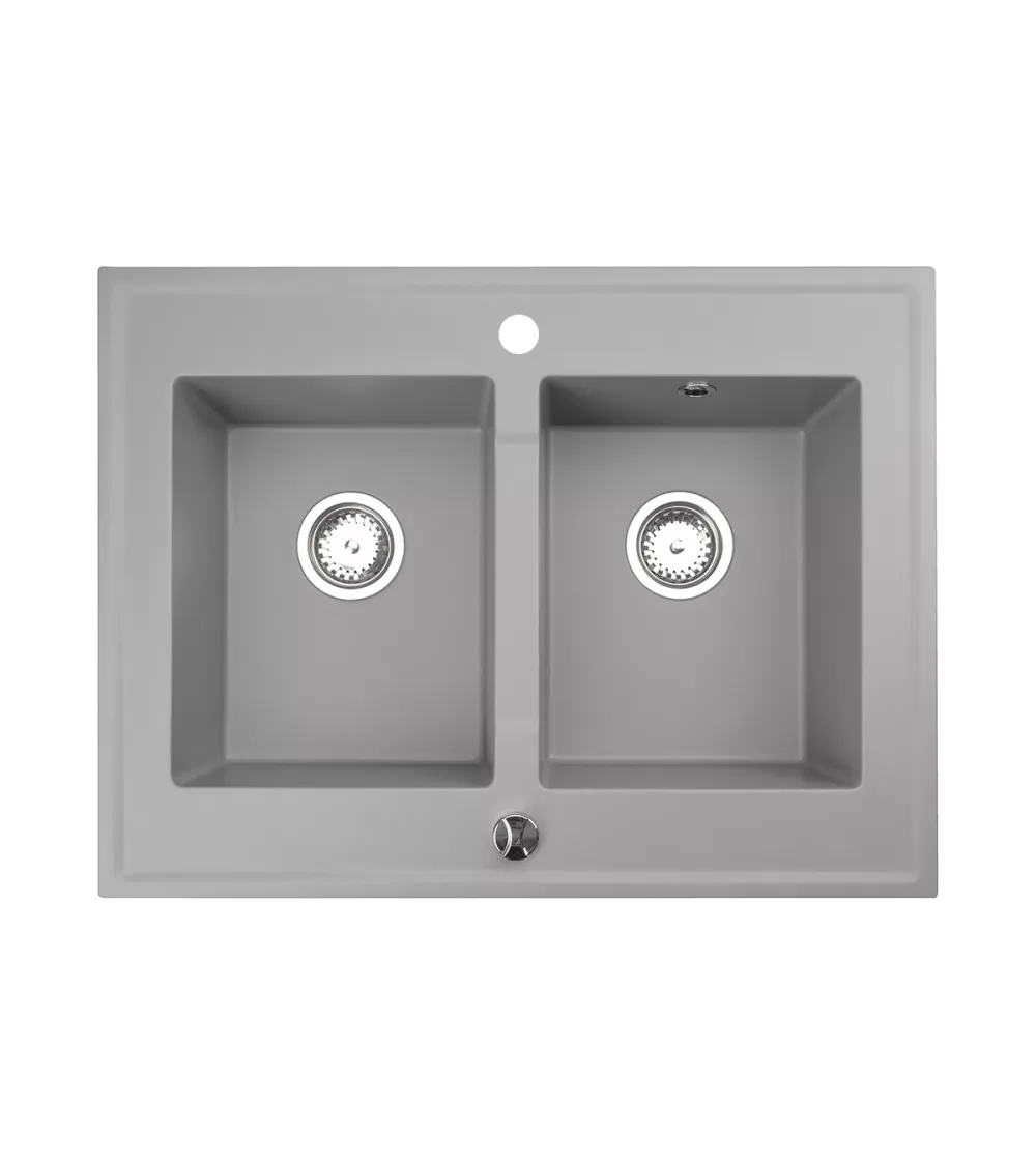 Zlewozmywak granitowy nakładany na szafkę BRENOR GRANDE 80X60CM- dwukomorowy szary