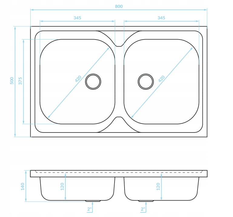 Zlewozmywak stalowy 80x50 - zlew dwukomorowy nakładany na szafkę